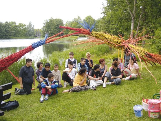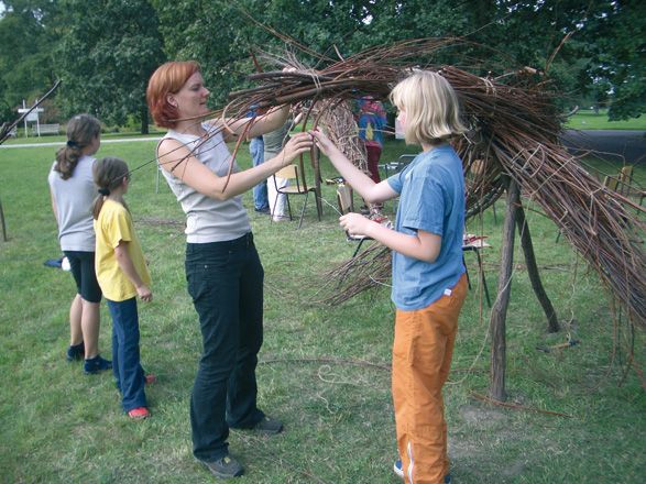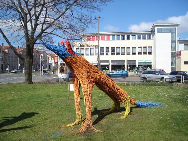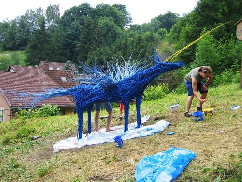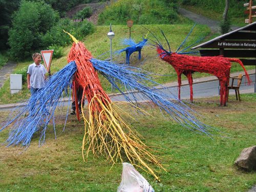 gebaut aus Weidenruten, farbig bemalt, entstanden bereits 2004 in Berlin (im Britzer Garten),