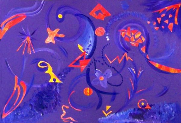 Im Rahmen des 4-tägigen Musik-Kunstprojektes fertigten Schülerinnen Malereien und grafische Arbeiten zu Mozarts „Jupiter-Sinfonie“, die anschließend im Foyer des Theaters präsentiert wurden. Im Vordergrund des künstlerischen Arbeitens stand die Visualisierung von Musik – das experimentelle Erarbeiten von Farben und Formen durch Interaktion zwischen Tönen und Klängen. Hierzu wurden die Proben des Erfurter Sinfonieorchesters besucht. Kleine Skizzen entstanden schon beim ersten Zuhören. Beziehungen zwischen Tönen und Farben wurden herauskristallisiert, eine Klangfarbe, ein Klangteppich mit lauten und leisen Tönen, in verschiedenen Farbabstufungen. In der synästhetischen Wahrnehmung gibt es viele Möglichkeiten, eine Melodie visuell umzusetzen. Die Konzentration bei der malerisch-grafischen Umsetztung lag auf dem wiederholten Hören der einzelnen Musikstücke und Sätze innerhalb der Sinfonie, die den Rhythmus, die Tonart, die Höhe und Tiefe der Klänge, die Stimmung der Instrumente vorgaben, welche individuell auf die Zuhörerinnen einwirkten. So entstanden verschiedene Formen, wie bspw. Kreise, Rechtecke, Linien, Punkte und Schwünge in den unterschiedlichsten Farben auf einem Bildteppich.